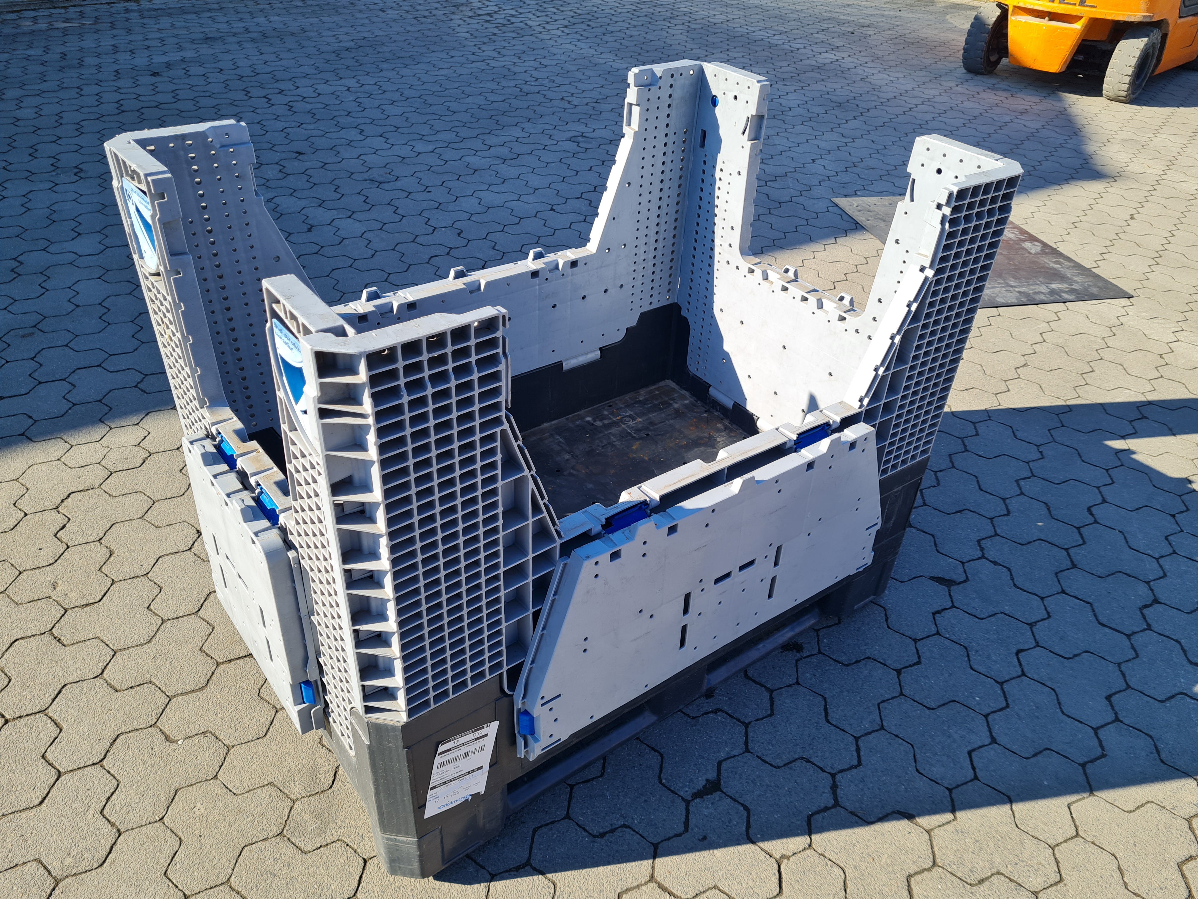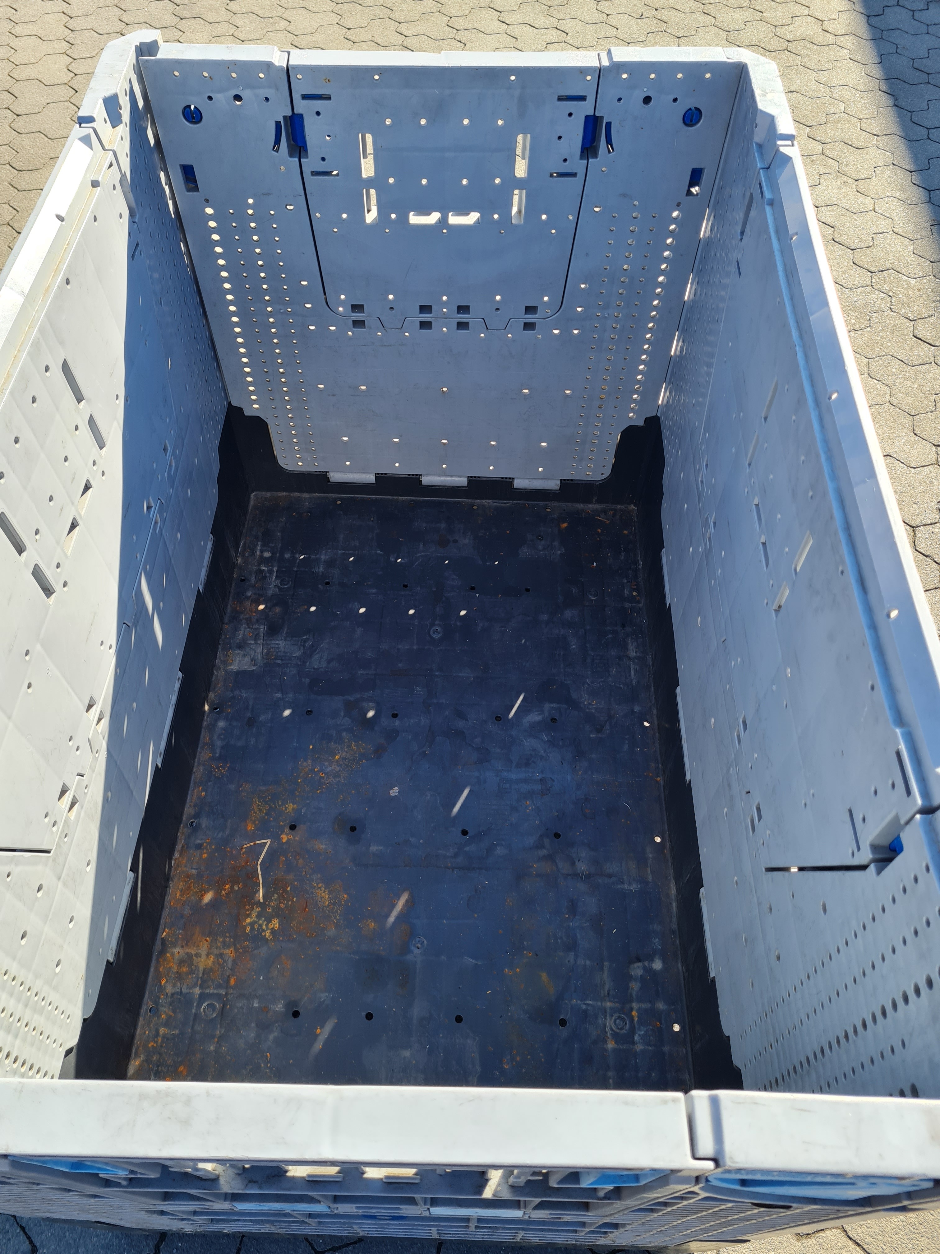 Die Palettenboxen sind gebraucht und haben diverse Gebrauchs- und Abnutzungsspuren. Sie wurden von uns nicht auf Funktion und Zustand